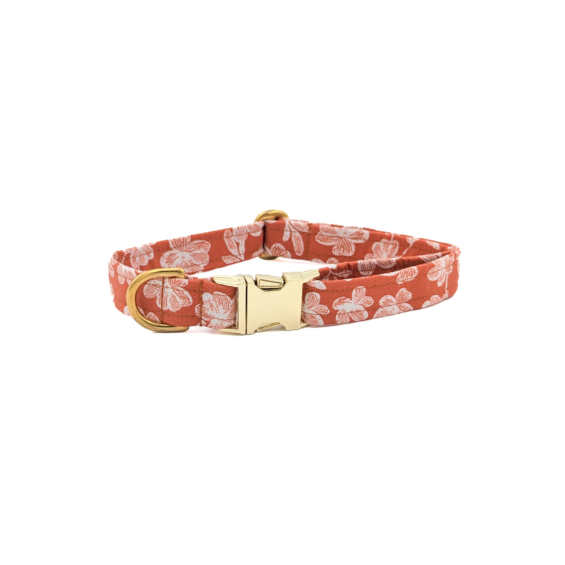 Our Autumn Flower Dog Collar is a beautiful flower pattern made up of rust orange and white colors.